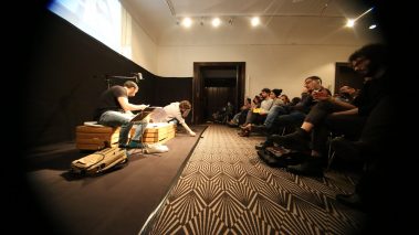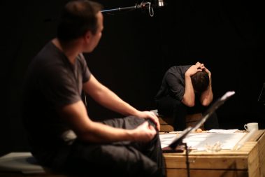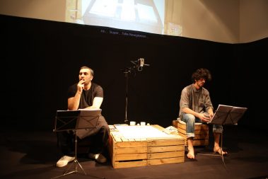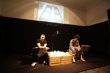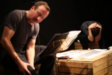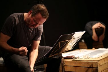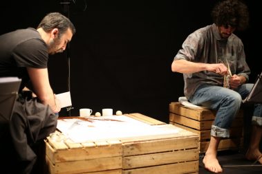غرق تألیف عالء الدین العالم في دمشق، حامال ً كل منھما إرثه من الھزائم، یقف االبن ً لوجه، یتعدى حوارھما الیومي وحدودھما الشخصیة لیصبح حواراً بین و األب وجھا ً بعد أن وجد جیلین ، األول أتخم بھزائم القرن العشرین، و الثاني اختبر الھزیمة حدیثا نفسه، و ھو الخارج من أجل الحریة، حبیس الحروب والنكبات من كل جانب. كل منھما یبحث في حواره/ صراعه مع اآلخر عن جدوى وجوده. المسرحیة مستوحاة من قصة كافكا القصیرة „الحكم”.