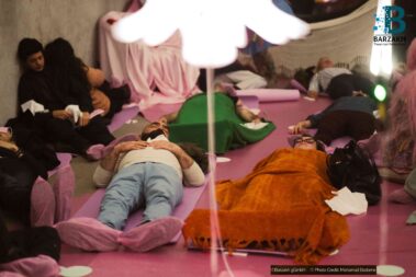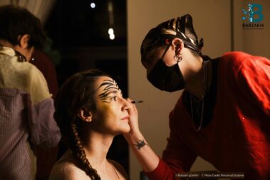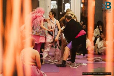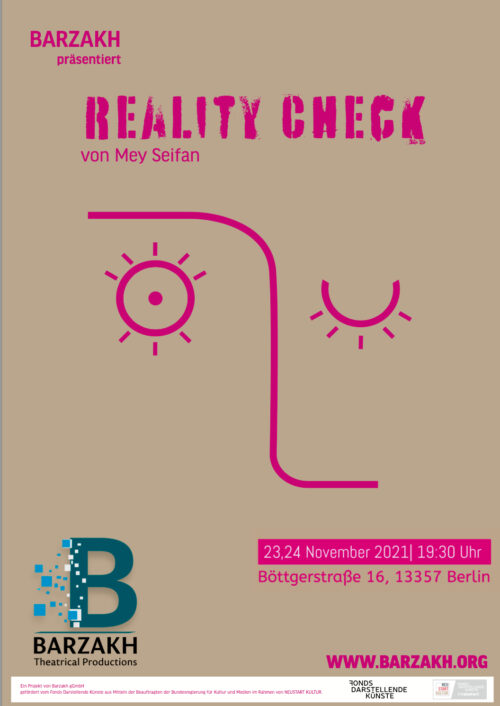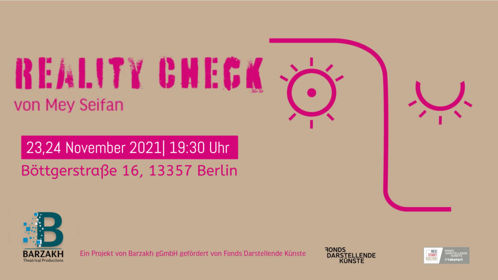 REALITY CHECK by Mey Seifan in collaboration with: Dramaturgy: Ziad Adwan | Performers: Annette Assmy, Gizem Akman, Bassam Dawood, Amr Karkout, Fatina Laila, Roua Reshah, Eneko Sanz, Layal Seifan | Visual artist and cognitive dream researcher: Mert Akbal | Choreographic objects: Lorenzo Malloni | Music: Saleh Katbeh | Set design: Theresa Scheitzenhammer | Costumes, media design: Duygu Kaban | Video documentation: Mouna Assali | Photography: Mohamad Badarne | Observing Researcher: Hazem Saleh | communication and press: Majdolen Haidar | production management: Peer Stark |
